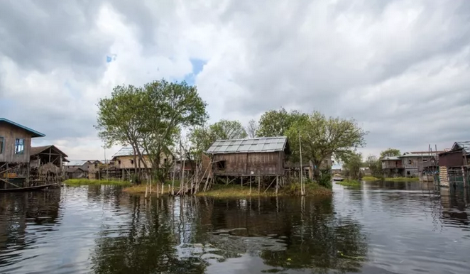 在这些浮岛上,除了建有水上村落,还有水上塔林。建在浮岛上的水上村落,它们可以随着湖水的涨落而升降,把固定物去掉还可以像船一样划来划去。在游船过程中,塔林也经常不经意地出现在眼前,在陆地、在水边、在下一个拐弯处……蔚为景观。