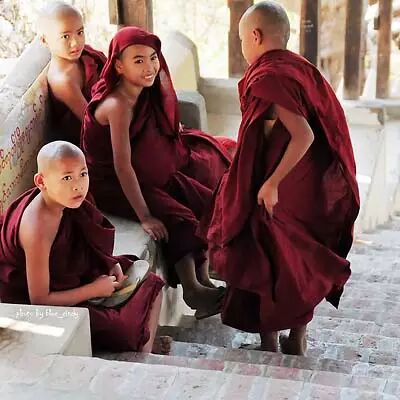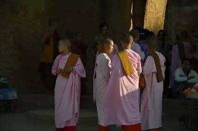 据说缅甸男子一生有两件头等大事,一是出家,二是结婚,如果从来没有出过家会被人看不起。缅甸的街头,餐馆和公共交通上,也时常见到身着暗红色僧袍的沙弥和粉红色僧袍的沙弥尼。在缅甸出家似乎是人生必备的阶段,出家人和常人无异,也可方便还俗。