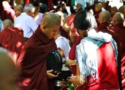 缅甸的民众已习惯了每日给予布施,缅甸的僧人也习惯了接受。食物随着一颗向佛之心被分发出去,千人化缘,万人供养,是缅甸一道独特的风景。