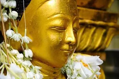 缅甸人爱佛,也爱花。缅甸各地的市场内随处可见鲜花的摊位。在大金塔,苏雷金塔和马哈牟尼佛寺等较大的寺庙,当地人也时不时为佛像献上还带着水珠的新鲜花朵。