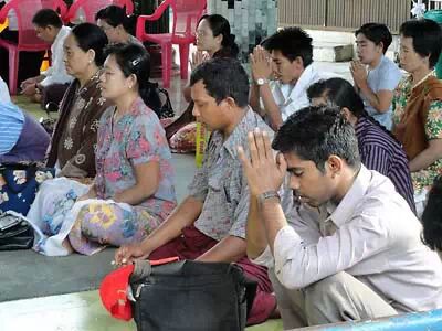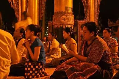 大多数缅甸人都是虔诚的佛教徒,家家都建有佛龛。不论男女老幼,拜佛,是缅甸人每日必不可少的活动,甚至已经成了一种习惯。