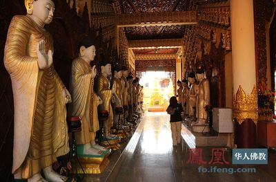 殿内供奉着不同国家和地区风格各异的佛立像。(图片来源:凤凰佛教 摄影:妙传)