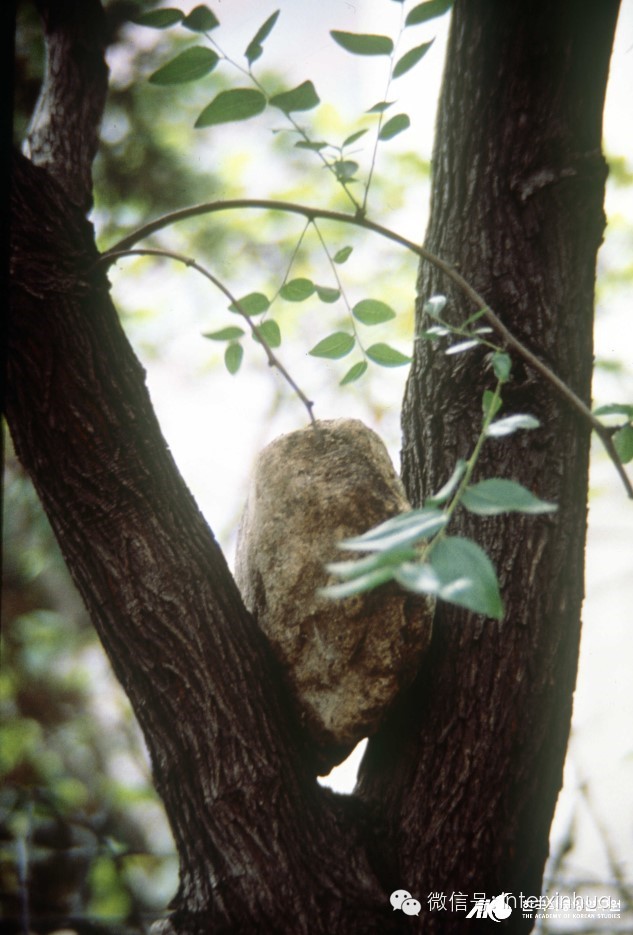 (在果树树枝间插入石块,意在祈求来年好收成)