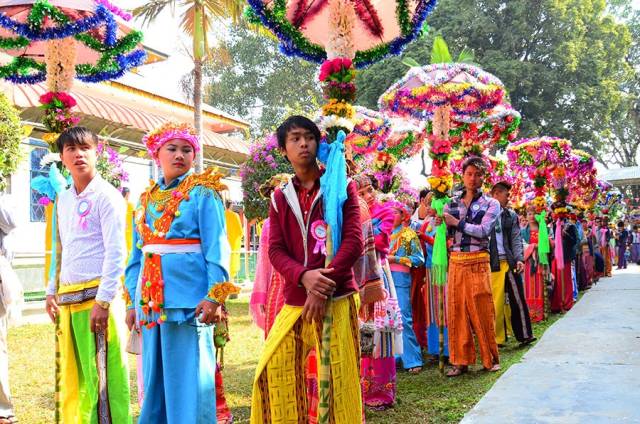 出家这一天是最热闹的,送行孩子到奘寺出家的队伍要进行巡游、表演等。