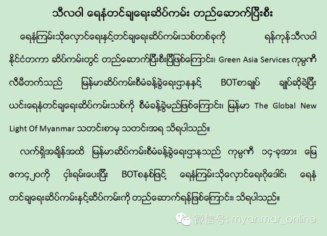 据缅甸《全球新光报》27日报道,一座新的原油储存和装运码头在仰光迪洛瓦国际港口建成使用。新的码头将由绿色亚洲服务有限公司依据与缅甸港口管理局签订的BOT协议管理运营。