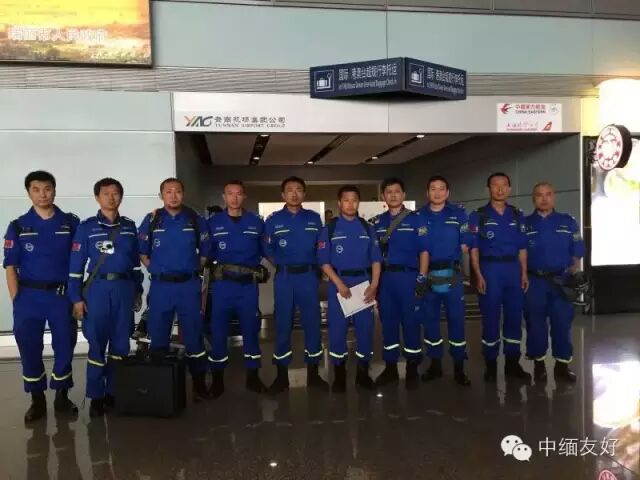 中国蓝天救援队在昆明机场集合,准备赴缅救援