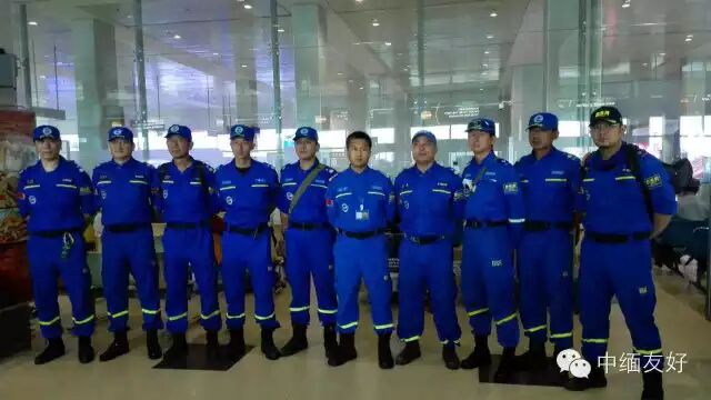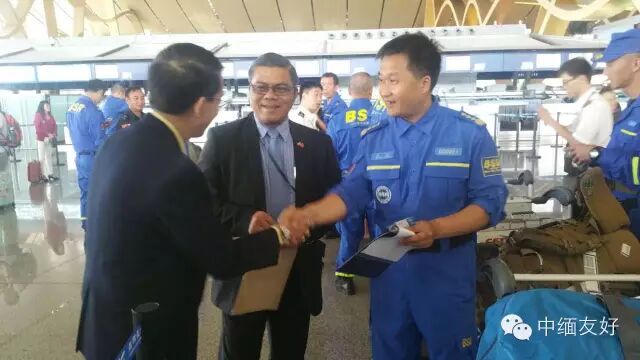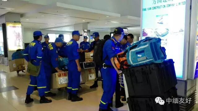 中国蓝天救援队抵达仰光机场 明天将赴若开邦开展救援工作(中缅双语)