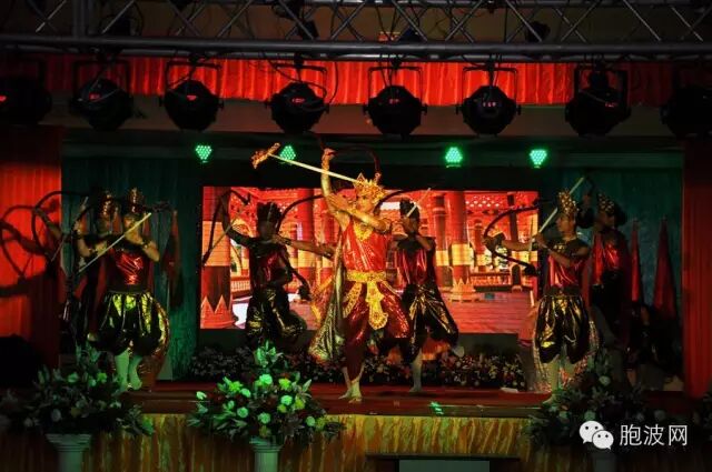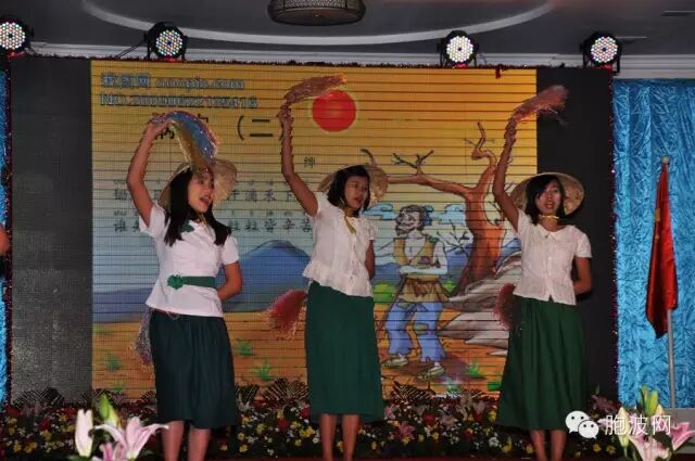 最大的好戏终于开场!晚上19:30时,“庆祝中缅建交65周年文艺晚会”拉开序幕。发生在公元(801)年唐朝京城长安的‘骠国乐’精彩文化艺术演出,再次展现于大家眼前。当看到骠国太子苏难陀与唐朝公主依依不舍的离别场景,大家为之动情;“福娃娃、喜洋洋、优教”三个孔子课堂属下的幼儿园的表演,吸收了爸爸妈妈们大量的闪光灯;尽管穿着形象有异,但是寺庙学校缅族贫困学生们的‘念唐诗、孔雀舞’等表演,获得了最热烈的掌声鼓励;获得中国国家汉办审核批准,被列入汉办海外志愿者体系,全世界‘独家’的福庆孔子课堂‘本土汉语教师海外志愿者’的‘志愿者之歌’大合唱,又听到幕后一句‘尽管他们的汉语水平参差不齐,但他们绝对是缅中两国民间的友好使者’时,全场响起了暴雷般的掌声;参加为期3-4天‘缅北汉语教学机构才艺培训班’学员们的汇报演出:“哈尼、撒尼、苗族、佤族”等少数民族舞蹈,让观众们看得目不转睛;最后最期待的‘胞波传奇---三个龙蛋的故事’开始,看着三个龙蛋一一裂开,宝石、美女、帅哥逐一出现,大家沉浸在浓浓的血浓于水的情感之际,男女主角突然亮出“胞波”两个大字,大家才如梦中惊醒,方知节目已到尾声。
