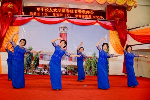 晚会还准备了丰富的文艺节目,首先是合唱,第一首“新年大吉”,祝福我们的生活越来越精彩,祝福我们的大中国崭新的时代。第二首“共筑中国梦”,雄伟是山的梦、宽阔是海的梦、强盛是中国的梦。还有女声独唱“天路”、男声小组唱“永远的朋友”,有缅甸歌伴舞、小组唱,数天数,有缅歌独唱、闽南歌独唱,;还有来自美国、泰国、香港的校友们也参加了节目表演。还有精彩喜气洋洋的舞蹈“盛世中华”,缅甸红歌星林清忠也上台演唱 。还有许多精彩舞蹈,包括最近才流行的广场舞踩踩踩,清晰动听的傣族舞“彩云之南”。小组唱“习主席寄语”是一首很有意义的歌。节目多姿多彩,校友们虽然也有一定的岁数,青春活力却不减当年。