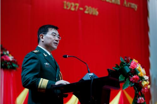 7月29日,中国驻缅甸联邦共和国大使馆陆、海、空三军武官王劲波大校夫妇在仰光诺福特酒店举行盛大招待会,热烈庆祝中国人民解放军建军89周年。