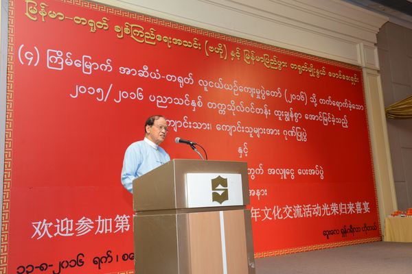 吴盛温昂主席在致辞中指出,缅中友协(中央)每年都组织优秀学生参加东盟-中国青少年文化活动,今年已是第四届了,共约50名。今年组织的学生代表团都是分别在全缅各邦区省份2015-2016年度全缅大学入学考试第一名获得者,其中包括全缅第一名获得者。
