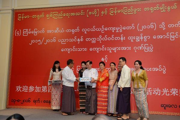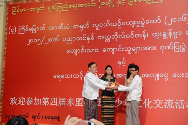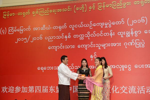 缅中友好协会(中央)和缅华基金会联手为国家造就优秀人才。吴盛温昂主席指出,缅中友协(中央)每年都组织青少年前往参加东盟——中国青少年文化活动,归来时也举行欢迎仪式。今年的规模比往年大,今年的欢迎会是由缅华基金会参加联手举办的。