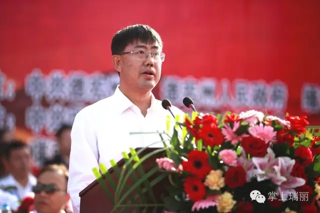 ▲州委常委、瑞丽国家重点开发开放试验区工委副书记、中共瑞丽市委书记马云峰在开幕式上致辞。