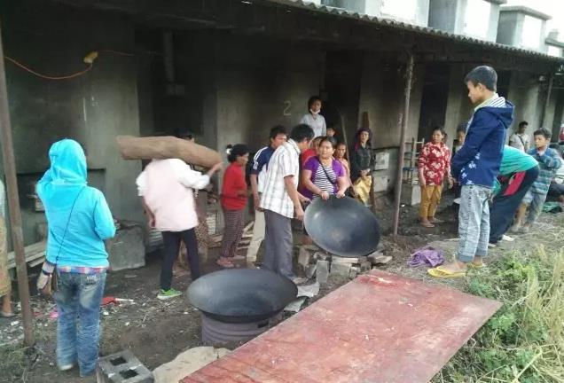 图为芒海吕英安置点厨房与厕所距离太近,队员动员边民动手重新搭建厨房