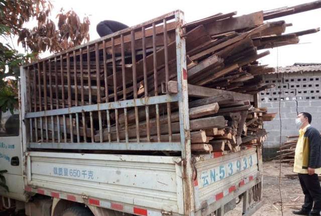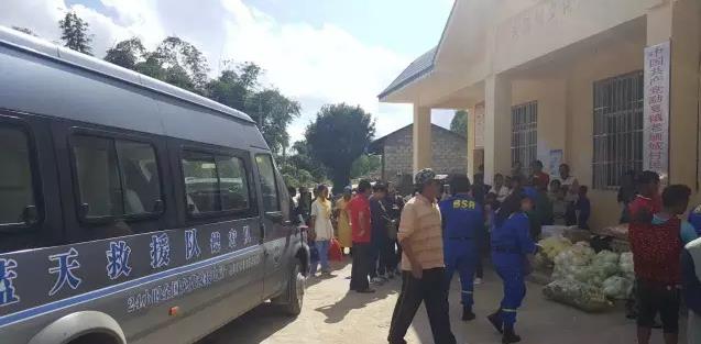 图为队员得知勐戛镇老缅城村民小组收容有缅甸避战边民,便协调生活物资前往该地