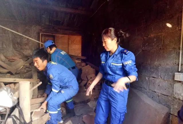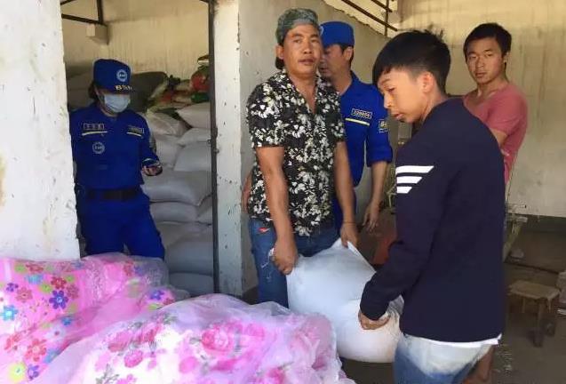 图为队员协助进行物资发放和入库登记工作