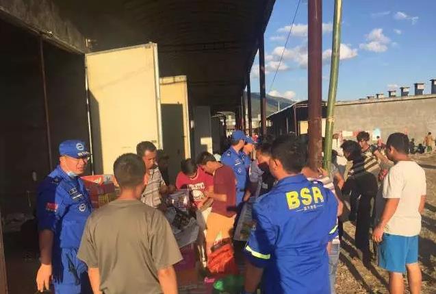 图为队员进行安置点物资发放