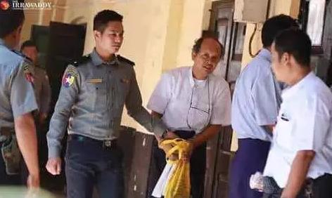 当天29号下午在机场持手枪直接对准受害者后脑开枪的凶手-祭林,及两天后被警方抓到的刺杀协同者-昂温索以及后来再被警方抓获的指使人-佘亚漂ေ和涉案昂温吞四名案犯,今天在仰光北区茵盛法院提堂审问。