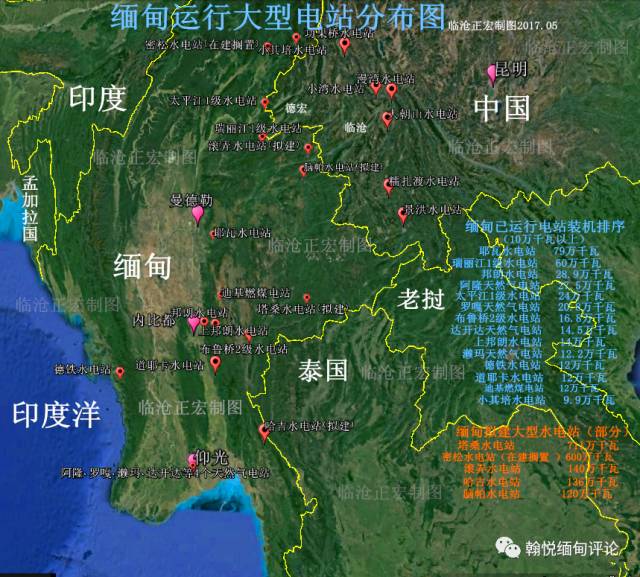 缅甸萨尔温江拟建大型电站如下:(部分,见上图)