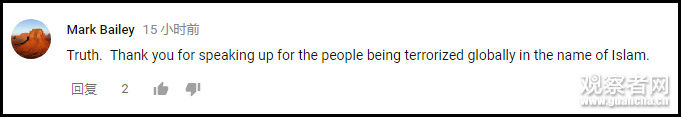 “真话。他们假借伊斯兰教之名实行恐怖统治,谢谢你为阴霾之下的人发声。”