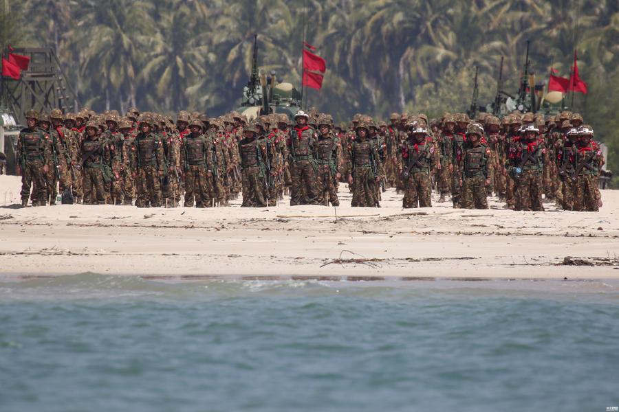 当地时间2018年2月3日,缅甸伊洛瓦底江三角洲,为期两天的缅甸军方“Sin Phyu Shin”联合军事演习迎来第二日。