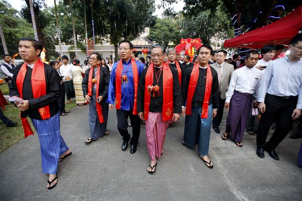 2月10日,中国驻缅甸大使洪亮及夫人王雪鸿在官邸举办2018年“开门过大年”迎春招待会。洪亮大使和缅甸政府代表、国务资政府部部长吴觉丁瑞分别致辞。仰光省首席部长吴漂民登,缅甸前副总统赛茂康、前副总统吴年吞,联邦议会人民院政府工作审查委员会主席、民盟中央执委吴梅温敏、公共管理委员会主席吴昂吞凯,仰光省军区司令岱蓬少将夫妇,警察总部副总警监苗瑞温警准将,特别情报局局长妙温警准将夫妇,巩发党中央执委、前外交部长吴温纳貌伦,克钦团结民主党主席吴凯廷奈,八八世代和平与开放社会组织秘书长吴哥哥基,缅中友协主席吴盛温昂,以及缅甸政府、议会、军队、政党、民间组织、华人华侨、中资机构、留学生和媒体代表等700余人出席了招待会。