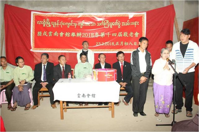 敬老会于2月23日下午2:30分在腊戌云南同乡会正在兴建的会馆大楼举行,云南同乡会荣誉会长杨立光,会长聂惟仁,常务副会长魏开智,副会长姜孟明、常启固、杨贵生、刘正昌、杨体良,监事长郑显聪,以彭国美为首的妇女妇女会姐妹,各位理、监事,恭敬地邀请老龄同乡入会,向他们表达最崇高的敬意和慰问。敬老会由杨贵生副会长、央正礼秘书联袂主持,杨贵生副会长兼任缅文翻译。