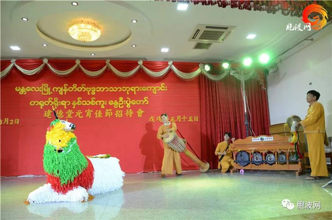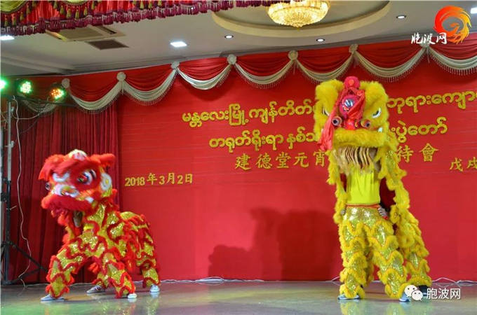 建德堂‘正大董(又称大哥)’尤建新先生向前来‘赏脸’的嘉宾表示感谢!并送上节日的祝福!随后,广东同乡会以及曼德勒武术协会上台表演了‘舞狮祝福’以及武术展示,接下来有金多堰妇女慈善会的姐妹们以及掸(傣族)会馆送上文艺节目,并有特邀歌手,为大家带来了许多悦耳动听的中缅歌曲。晚会在热烈的掌声中圆满结束。