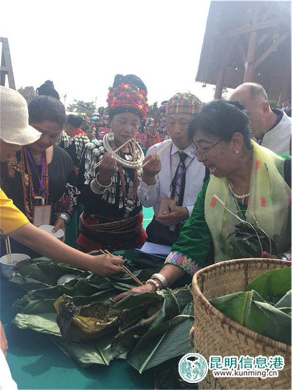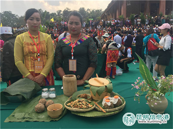 缅甸密支那代表队带来的景颇族美食。记者谭石艳/摄