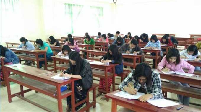 3月10日上午,在于曼德勒省彬乌伦市彬萨雅达纳崩科技大学(简称:UTYCC)举行2017~2018年度汉语班期末考试。目前,该大学已有“曼德勒缅中友协+UTYCC+福庆孔子课堂”三个单位合办的两个汉语培训班。第一班(现称“HSK二级班”)是从2017年6月份开始开班的,现在该班学汉语已有两个学期的时间了(每个学期要上80个的课时)。该班今年参加考试的学生人数有40人,大多数学生是大五、大六的学生。“二级班”考试的科目有《新使用汉语课本》“第一册”、《快乐汉语》“第二册”以及《HSK二级》。
