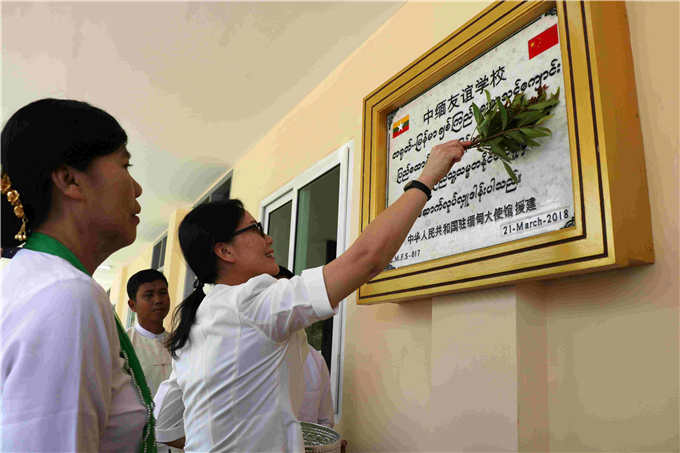 3月21日,由中国驻缅甸使馆援建的第17号中缅友谊学校揭牌仪式在伊洛瓦底省兴实达市额麦恩村中学举行。中国驻缅甸使馆公使衔参赞李小艳,伊洛瓦底省政府代表、省教育厅处长杜艾艾妙,兴实达市市长吴缪昂,兴实达市教育局局长吴敏温以及额麦恩村所属地方镇区官员、学校师生共300余人出席了揭牌仪式。