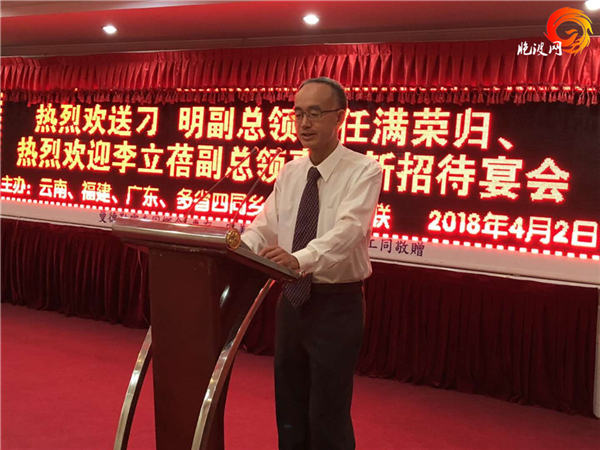 云南同乡会理事长尙兴玺代表四大同乡与妇联讲话,感谢刁明副总领事在曼德勒工作期间对曼德勒华社以及华文教育所做的努力,并欢迎新到的李立蓓副总领事与曼德勒华人一起携手共创辉煌。
