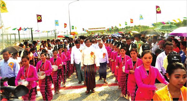 若开邦耶德堂市举行大桥通车典礼,国家电力网也开始24小时供电