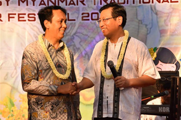 吴漂民登表示,在此辞旧迎新之际,祝愿缅甸全国人民身心健康!中国驻缅甸大使馆在仰光举行缅甸传统泼水节庆祝活动,这是有史以来在缅甸外交使团中的第一次。为此,特别感谢中国大使馆。此次活动不仅促进了缅中两国之间的友好关系,更促进了两国民心相通。缅中两国政府、人民携手合作,必将更好推动缅甸的发展。