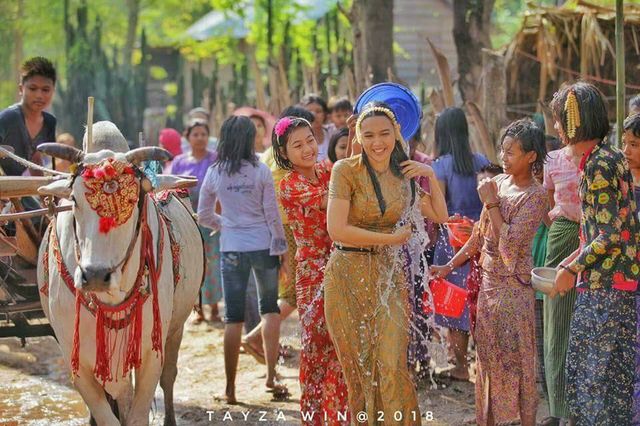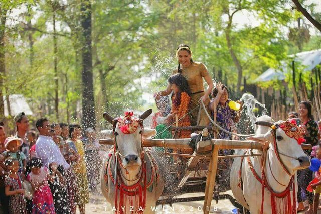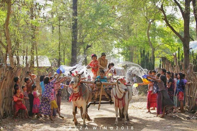 ▼泼水节期间,不少缅甸人选择暂时脱离喧哗的城市,到僻静的农村寺庙修身养性