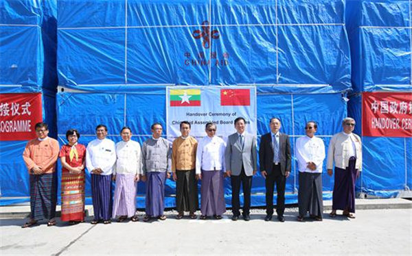 10月27日,中国政府援助缅甸1000套活动板房交接仪式在仰光迪洛瓦港口举行。中国驻缅甸大使洪亮与缅甸建设部副部长觉林代表两国政府分别签署交接证书,洪亮大使向缅甸国务资政府部长觉丁瑞转交交接证书,标志着中方正式向缅方移交该批物资。仰光省首席部长漂民登、缅甸社会福利与救济安置部副部长梭昂、中国驻缅甸使馆经商参赞谢国祥等出席交接仪式。