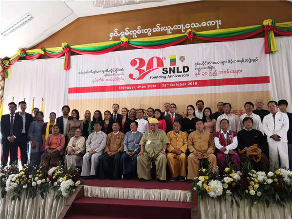 10月26日,缅甸掸族民主联盟建党30周年纪念仪式在掸邦东枝举行,我馆李小艳公参,缅甸联邦议会人民院副议长吴吞吞亨、掸邦首席部长林突博士、掸邦议会议长吴赛隆山以及联合民族联盟、掸族社会组织代表和部分国家驻缅使馆官员等约2200余人应邀出席。