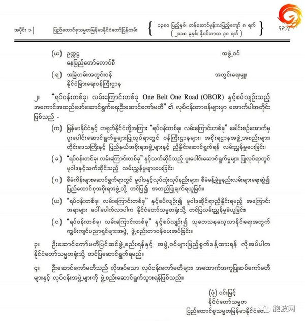 12月8日凌晨《胞波网》发布了《缅甸联邦政府发布“一带一路实施委员会”名单》后,该文广受热议并被转载......今天主编再阅文稿时发现了重大失误——原来昨天发布的文章少了一页。为了降低编辑失误造成的影响,《胞波网》赶译了第二页并在此将文章完整版全文刊发。