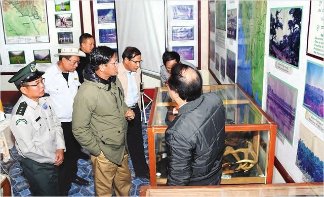 副总统一行还视察了卡卡波亚希国家公园及逢甘亚希(Pnonkanrazi)野生动物保护林展览馆,听取有关工作人员汇报的这两处地区的情况。卡卡波亚希公园位于葡萄窝专区瑙蒙(Naungmon)县境内,占地面积1472平方英里(合3800多平方公里),1998年11月10日由缅甸政府定为国家公园区,2003年12月18日被选为东盟国家自然遗产公园。逢甘亚希野生动物保护林成立于2003年12月1日,位于葡萄窝、马仓坡及瑙蒙县境内,占地面积1044平方英里(合2700多平方公里)。保护林中栖息着喜马拉雅东部地区的不少珍稀动物,包括扭角羚羊(Takin)、红熊猫(Red Panda)、红山羊(Red Mountain Goat)等在内的哺乳动物36种、鸟类370种、蝴蝶360种、两栖及爬行动物82种等。