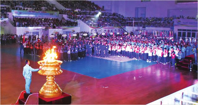 据12月10日及12月11日出版的《缅甸之光》报报导,第19届东南亚大学生运动会的欢迎仪式及升旗仪式于12月9日在缅甸内比都运动村举行。而开幕仪式则在内比都的Wuna Theitdi室内综合运动馆场Sport Complex Indoor Stadium内举行。缅甸国家副总统吴密瑞U Myint Swe出席了此开幕典礼并致开幕词。