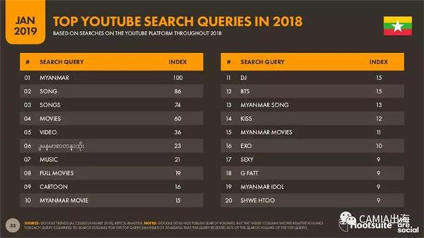 2018年Youtube缅甸TOP20热搜词