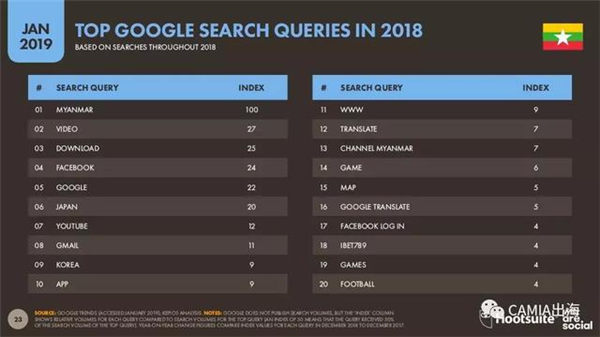 2018年谷歌缅甸TOP20热搜词