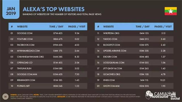 2018年Alexa缅甸TOP20网站