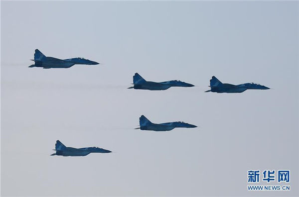 3月27日,在缅甸内比都,军机参加建军74周年阅兵式。当日,缅甸在内比都举行建军节阅兵式,纪念建军74周年。新华社发(吴昂 摄)