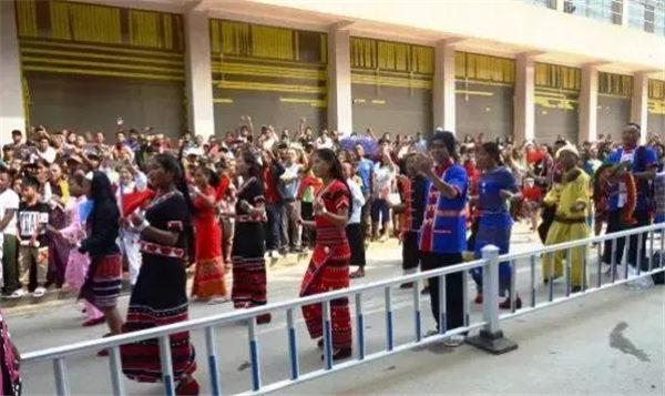 4月16日晚,为了欢迎各位嘉宾的到来,举行了隆重的佤族歌舞表演。
