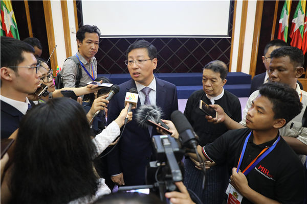 洪大使表示,上周,昂山素季国务资政赴华出席第二届“一带一路”国际合作高峰论坛,两国领导人就中缅共建“一带一路”达成重要共识。“一带一路”是和平之路。缅甸和平进程,特别是缅北和平进程不仅对维护缅甸联邦团结稳定至关重要,而且对维护中缅边境地区和平安宁、促进中缅经济走廊建设也至关重要。近年来,根据缅方需求,中方在有关各方之间劝和促谈,为推动缅甸和平进程发挥了建设性作用,并愿继续为此提供帮助和支持。中缅双方在缅甸和平进程中开展富有成效的合作,进一步丰富了两国全面战略合作伙伴关系的内涵,也进一步提升了两国人民之间的传统胞波友谊。