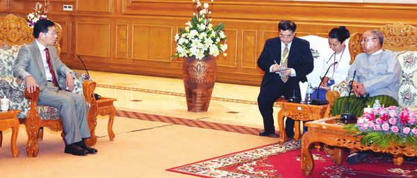5月8日的《缅甸之光》报,也报导了缅甸总统吴温敏接见了即将离任的中国驻缅甸大使洪亮。