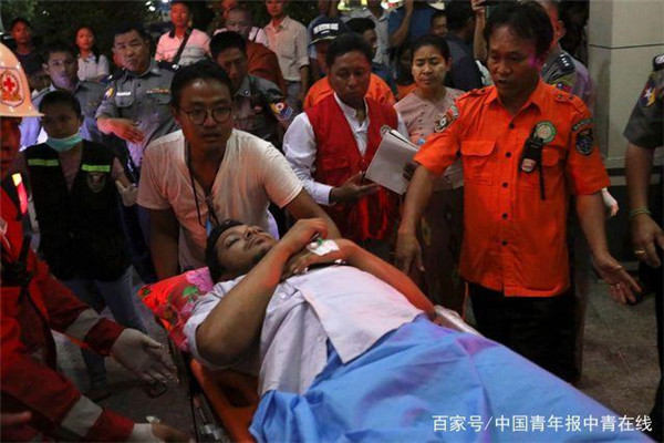 5月8日,缅甸仰光,一名在客机事故中受伤的乘客被转移。新华社/路透