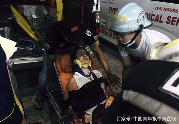 5月8日,缅甸仰光国际机场,一名伤员接受医疗救治。新华社发(吴昂摄)
