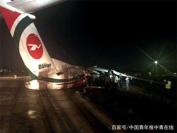 5月8日,缅甸仰光国际机场,孟加拉国航空公司客机。一架孟加拉国航空公司客机8日在缅甸仰光机场降落时滑出跑道。据了解,这架客机共有乘客及机组人员37人。缅甸民航局8日在通报中说,事故共造成13名乘客和5名机组人员受伤。新华社发(缅甸民航局供图)
